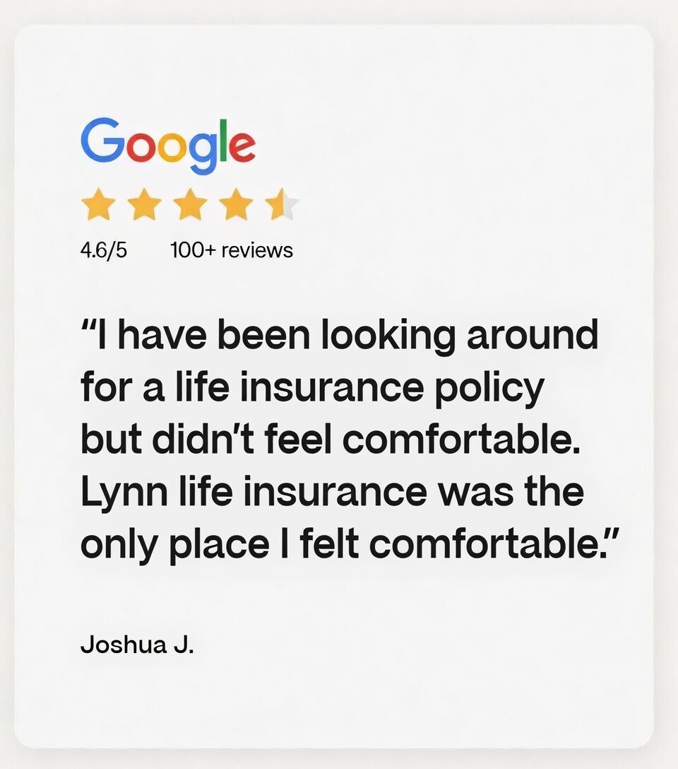 Working with Lynn Life Insurance was very simple and easy. It was fast, convenient, and stress‑free. I’d recommend him to anyone
